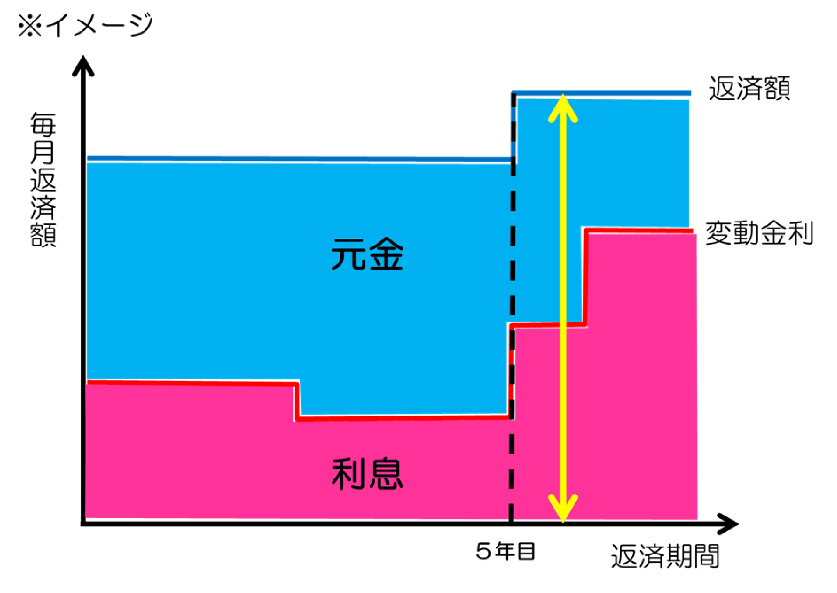 金利が上がっても、最初の5年間は毎月の返済額がそのまま据え置きになります。